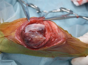 症例:右大腿骨遠位部の肉腫 クランバー・スパニエル 9歳 雌(未避妊)