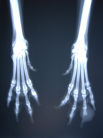内科治療に反応が乏しい四肢の跛行や疼痛は、本症例のように腫瘍が原因となっていることがあるため、レントゲン検査、骨生検等積極的に原因追及のための検査を実施することが必要である。骨の破壊を起こす悪性腫瘍は、非常に強い痛みを伴い、消炎鎮痛剤を用いても痛みを抑えることが困難となる。痛みの除去および腫瘍の治療のために断脚手術や抗がん剤等が必要となる場合があり、似た症状を示す整形外科疾患等とは治療法・予後が異なるため、その鑑別は重要である。