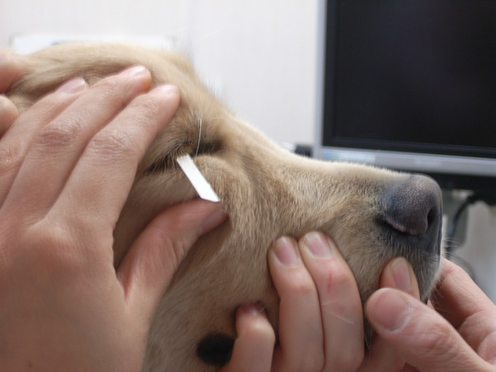 乾性角結膜炎とは、涙の分泌量の低下あるいは涙の質の低下に伴い、角膜や結膜の表面に炎症が起る病気です。また、涙の量が少ないため角膜潰瘍などが治りにくい場合もあります。