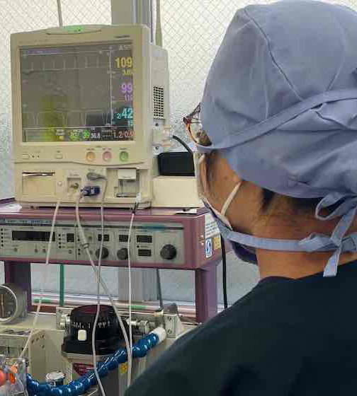 手術の操作の内容や痛みに応じ、鎮痛薬の調整や、追加投与などを行います。バイタルに変動があれば、麻酔薬の調整だけでなく、昇圧剤などを用い対応します。