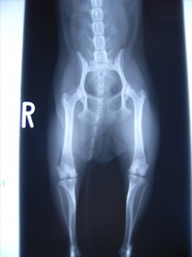 うずくまった姿勢で歩行するまたは、前肢に体重をのせ、患肢を浮かせたように歩行します。このように程度の差はありますが、痛み、腫れ、跛行、患肢の挙上など共通してみられるものもあります。特に小型犬においてよく見られる疾患で、長期間放置すると歩行異常や関節炎などに進行します。