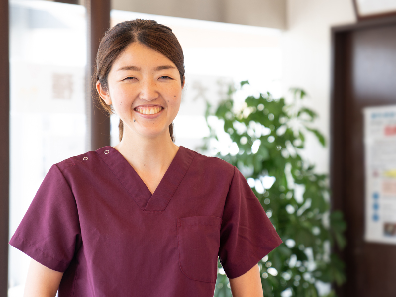 最初は、研究室の先生と本渡院長が同級生と言うことで見学に行きました。その際、上の先生方がとても雰囲気よく働いていたのが1番の理由です。また、院長に相談しながら確認してもらって診察しているところがいいなと思って就職希望しました。