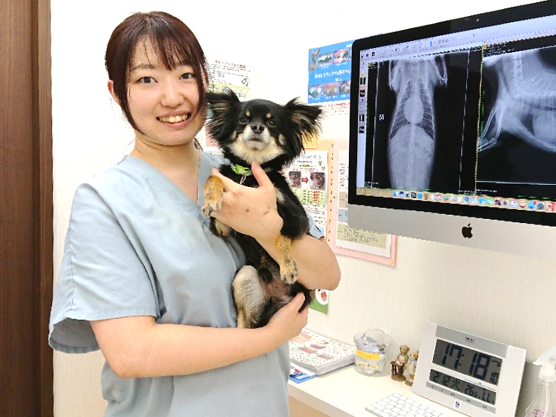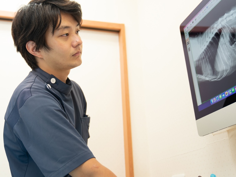 近年では大学での臨床教育のレベルが上がり学生の知識レベルが上がってきており、新卒の時点で専門的な知識を有している学生も多いと感じます。ただ、臨床の現場で一番大切なのは知識技術ではなく、どのような考え方でこの仕事に向き合っていくかだと思っています。本渡院長はそのことを一番重視し指導してくれます。専門知識を有した獣医師が多数いるため知識技術を学ぶことを目標にする学生にとっても良い病院だと思いますが、臨床医としての基礎を学ぶ上でもとても勉強になる病院だと思います。