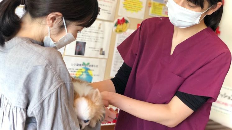 診察室での診療は密な空間になってしまうため、待合室や外で獣医師や愛玩動物看護師が問診を取り、患者動物をお預かりいたします。