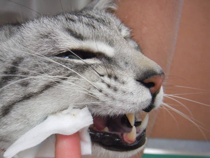 - カリシウイルスに感染することで起こります。初期は、クシャミ、鼻水、発熱などの風邪様の症状を起こします。また、口腔内に潰瘍や水泡ができるのが特徴です。子猫の場合は、他の病気との合併症により症状が悪化し死亡する場合もあります。
