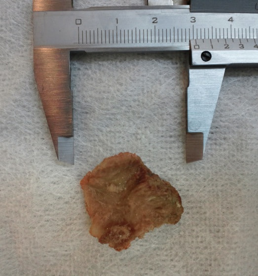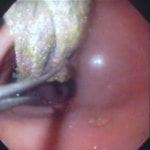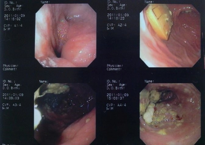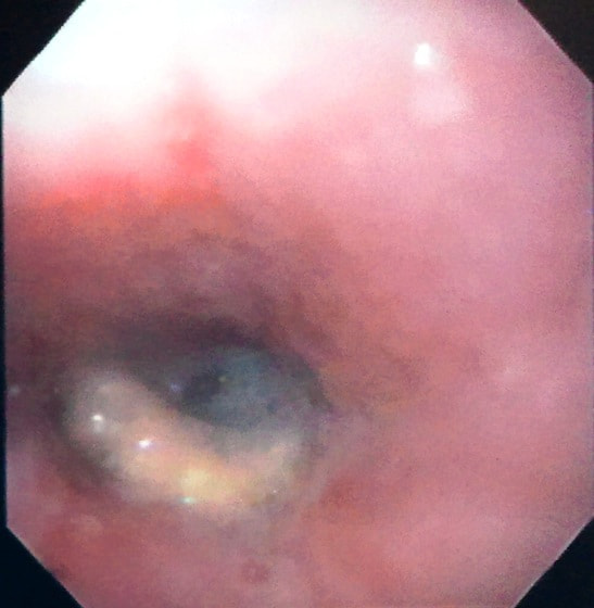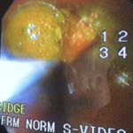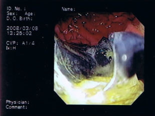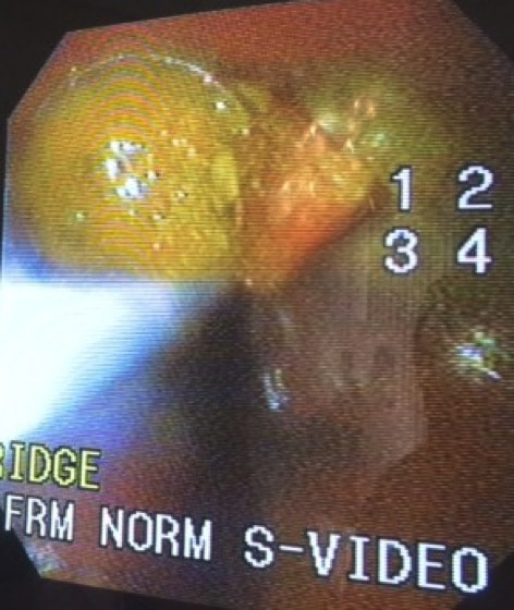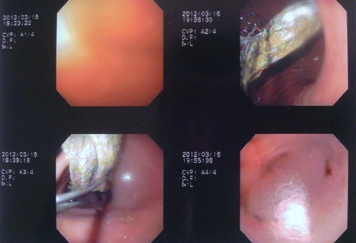 内視鏡検査結果:内視鏡下にて、バスケット鉗子を用いて摘出。