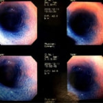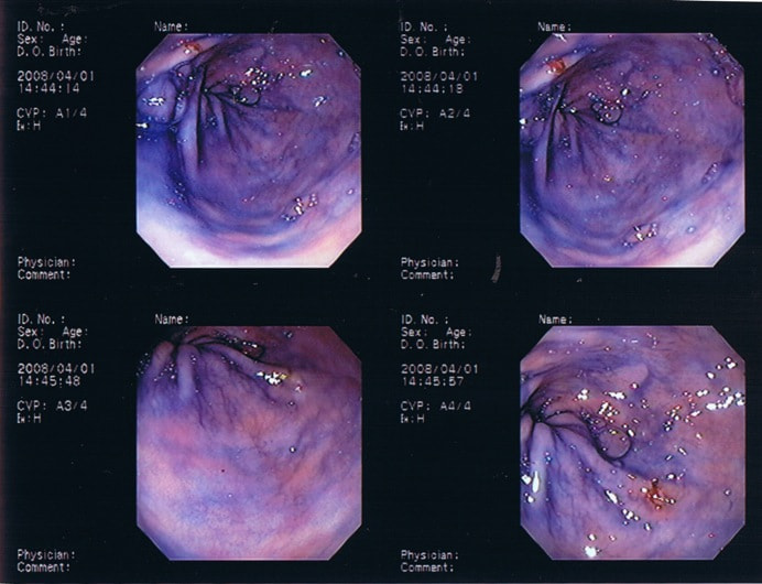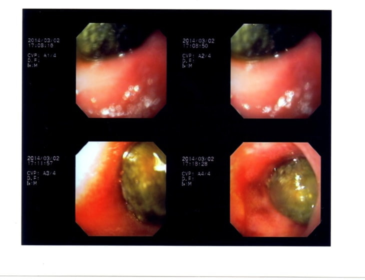 診断後経過:炎症性ポリープは多発する傾向や腫瘍に転化する可能性があるため、消炎剤、抗生剤、整腸剤による内科療法を継続しながら、現在プルスルー法による外科的摘出術を検討中。