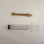 本症例は、床に落としてしまった桃の種を誤飲していました。動物の体格に対して異物が非常に大きく、開腹手術となる可能性があった症例でした。また、桃の種と一緒に出てきたとうもろこしの芯は、日々のおやつとして与えていたものということでした。とうもろこしの芯は非常に硬く、小さく切って与えても消化されず、長期間胃内に残ってしまうことや腸閉塞の原因となる為、注意が必要です。