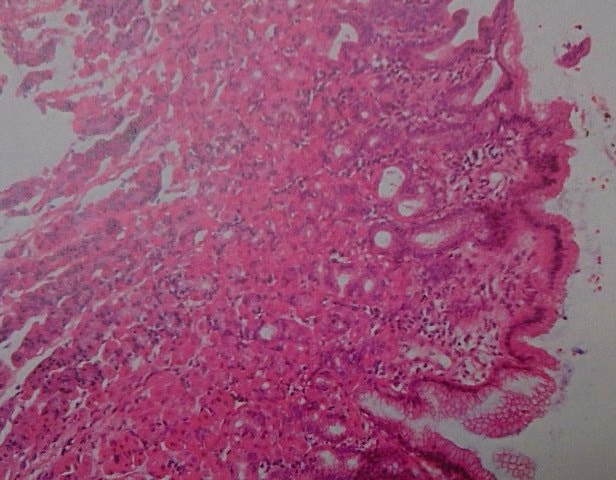 病理検査:直腸の病変は、良性の非腫瘍性病変の一つである“炎症性ポリープ”と診断された。