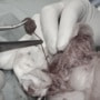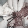 術後約1ヶ月頃より徐々に血便やしぶり便症状がみられ始めました。ステロイド療法を開始しましたが反応に乏しかった為シクロスポリンを併用しました。しかしながら直腸検査にて直腸内腫瘤の再発が確認され、症状の悪化も認められました。腫瘤の腫大は著しく、排便時に肛門からの脱出が認められ始めた為、外科療法として直腸粘膜引き抜き術を実施しました。