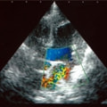 C:超音波 僧帽弁逆流のカラードップラー画像