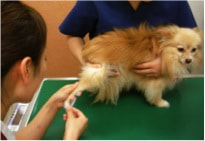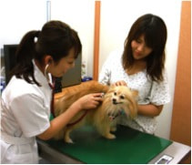 体温、心音、心拍数、呼吸状態を確認し、 全身を隈無く視診・触診していきます。