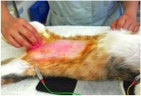 猫ちゃんの去勢手術の場合、傷口の癒合が早 いため、縫合は行っておりません。