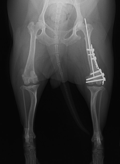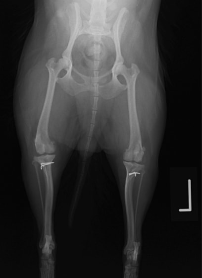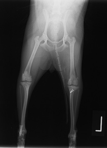またはantirotational sutureなどを行い、安定した手術成績を残しています。しかし、最終グレードであるIVになり、膝関節の伸展が難しくなったり、骨格の変形が重度になると予後は不良です。状況により、治療のご説明をさせていただきます。
