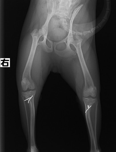 左右膝蓋骨内方脱臼(左:グレードⅣ 右:グレードⅢ)