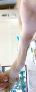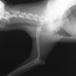 左後肢の完全挙上を主訴に来院されました。触診にて近位足根関節の過伸展を、レントゲン検査にて左足根関節周囲の軟部組織の腫脹、ストレス撮影によって距骨・踵骨と第4足根骨・中心足根骨間の脱臼および過伸展を認めました。