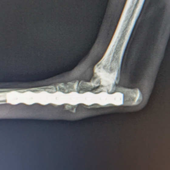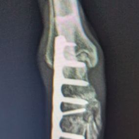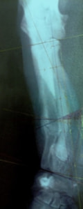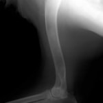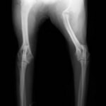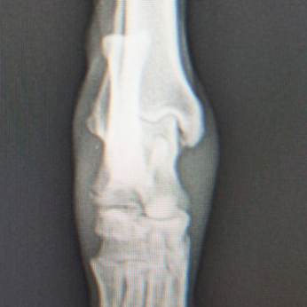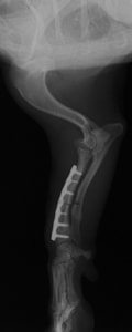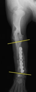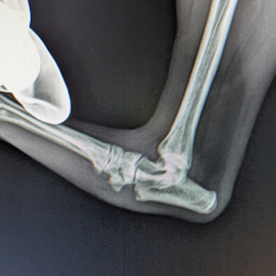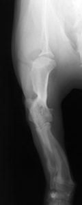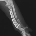 若齢動物において、橈骨と尺骨は互いに同調した成長をしています。一方の骨の成長に障害が生じると、他方の骨に変形や彎曲、関節形態の異常が引き起こされます。これらの変形が動物自身の補正可能範囲を超えてしまうと、深刻な機能異常を呈し、歩様は著しく変化します。