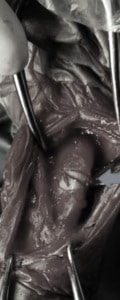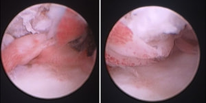 <関節鏡写真:右肩関節内滑膜炎像>※写真は山口先生のご厚意による