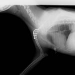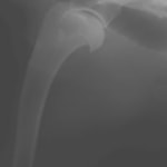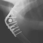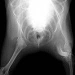 3ヵ月前より左前肢の跛行が認められるとのことで、来院されました。整形外科学的検査において、患肢の肘関節・肩関節重度の伸展制限が認められました。Xray検査において、左肩関節の内方脱臼、および肩甲骨関節窩の低形成と上腕骨頭の変形が認められました。