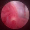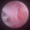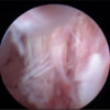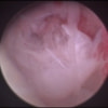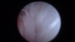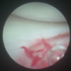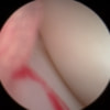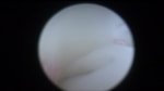 関節穿刺を行い、好中球はなく、少数のマクロファージや滑膜細胞が認められるました。膝蓋骨脱臼および前十字靭帯断裂による退行性の関節炎を疑い、関節鏡検査を実施いたしました。関節鏡検査では、重度の滑膜炎および前十字靭帯の完全断裂が認められました。内外側とも半月板に損傷は認められませんでした。