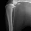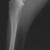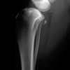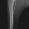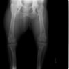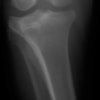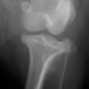写真の膝関節の垂直線を綿棒の木柄が表しており、遠位の脛骨粗面との位置関係が平行ではありません。
