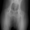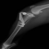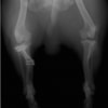 左後肢の挙上を主訴に来院されました。触診にて両関節の前方引き出し兆候、両膝蓋骨の内方脱臼を認めました。関節液検査より免疫介在性多発性関節炎は否定的でした。レントゲン検査にてfat pad signを伴う関節炎が認められたことから、前十字靭帯断裂と膝蓋骨内方脱臼(左GradeⅢ 右GradeⅢ〜IV)併発と診断し、手術を行いました。