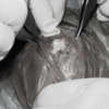 転移側の骨床は犬種特有の変形した表面であったため、転移後の骨片の圧着状態が改善するように変形表面をラウンドバーにて切削しました。滑車溝の著しい低形成が認められたため、滑車溝形成術を実施いたしました。