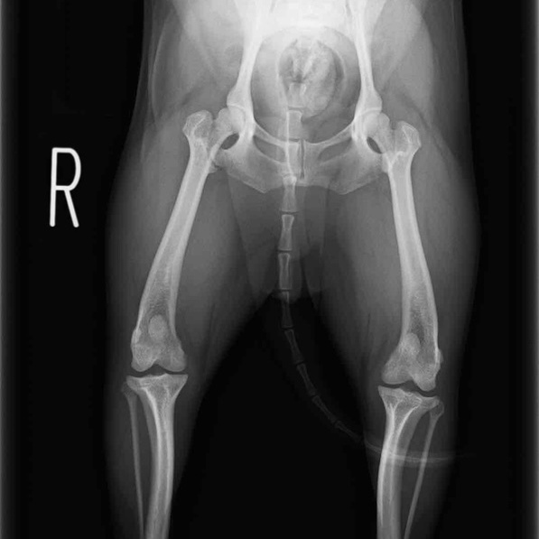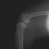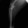 突然の非負重性の右後肢跛行を主訴に来院されました。触診上、右膝の伸展痛が認められ、整形外科学的検査において右膝の内外側の膝蓋骨脱臼(Grade Ⅱ)、脛骨圧迫テストで陽性が認められました。神経学的検査において特に異常は認められませんでした。レントゲン検査において、関節液の貯留所見や脛骨の前方変位の所見は認められませんでいた。