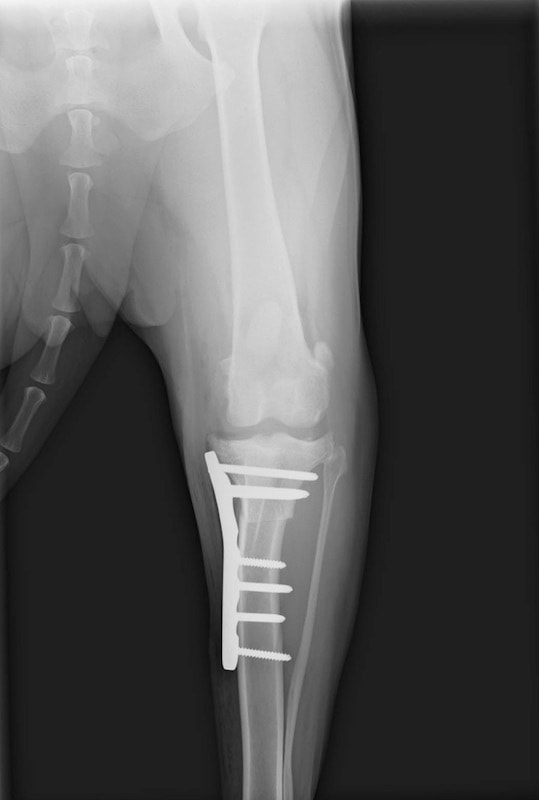 断裂前十字靭帯の除去を行いました。その後 TTA(Tibial tuberosity advancement)を実施しました。