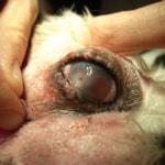 眼球内を循環している房水の流出が何らかの原因で障害されることによる、眼内圧の上昇のことをいいます。眼の充血、痛みなどを伴い、眼球の腫脹が起こり、最終的には視覚障害に至ります。ご家庭で気付かれる症状としては、元気消失、頭を壁にこすりつけながら歩く、物にぶつかるなどが認められます。緑内障は、眼科疾患の中でも緊急対応が必要な疾患です。早期発見が視覚維持に繋がります。