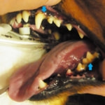 以前から歯石の沈着が軽度に認められました。麻酔科にて、口腔内レントゲン検査を行いましたが、大きな異常はありませんでした。歯肉炎と臼歯に比較的歯石沈着が認められたためスケーリング、ルートプレーニング、ポリッシングを行いました。