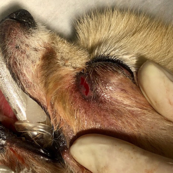 避妊雌慢性的に左の眼下の腫脹と排膿を認め、内科療法に反応するも繰り返すとのことで受診されました。