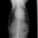 胸部レントゲン検査において重度の心拡大と肺水腫が認められた。超音波検査では、重度の僧帽弁閉鎖不全症、三尖弁閉鎖不全症、中程度の大動脈弁閉鎖不全症を合併していることが判明した。三尖弁逆流速度から肺高血圧症が示唆された。