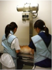 胸腹部のレントゲン写真を撮影し、気管、肺、 心臓の陰影から呼吸器系・循環器の異常の有 無を検査します。