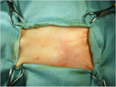 感染を予防するため、手術部位及びその周辺 の毛を刈り、殺菌消毒します。