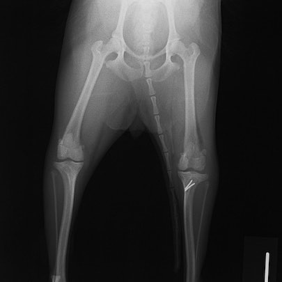 またはantirotational sutureなどを行い、安定した手術成績を残しています。しかし、最終グレードであるIVになり、膝関節の伸展が難しくなったり、骨格の変形が重度になると予後は不良です。状況により、治療のご説明をさせていただきます。